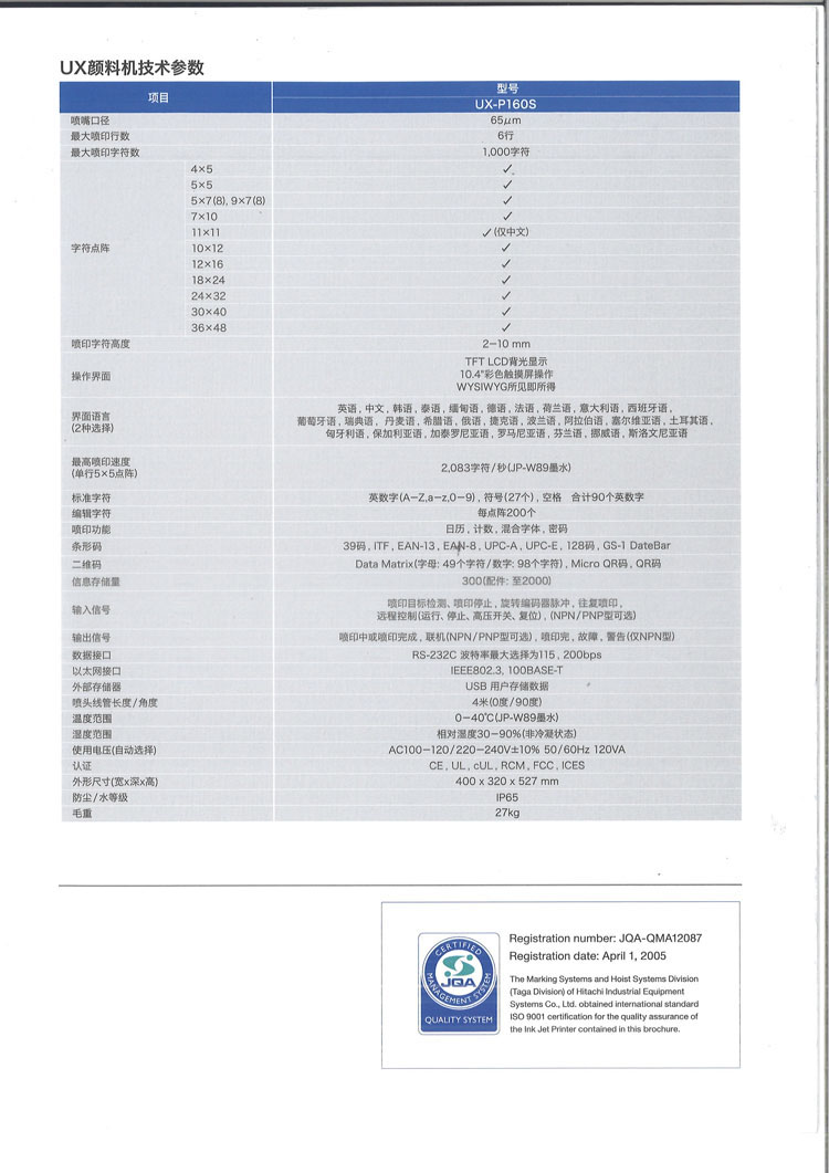 日立噴碼機(jī)UX系列