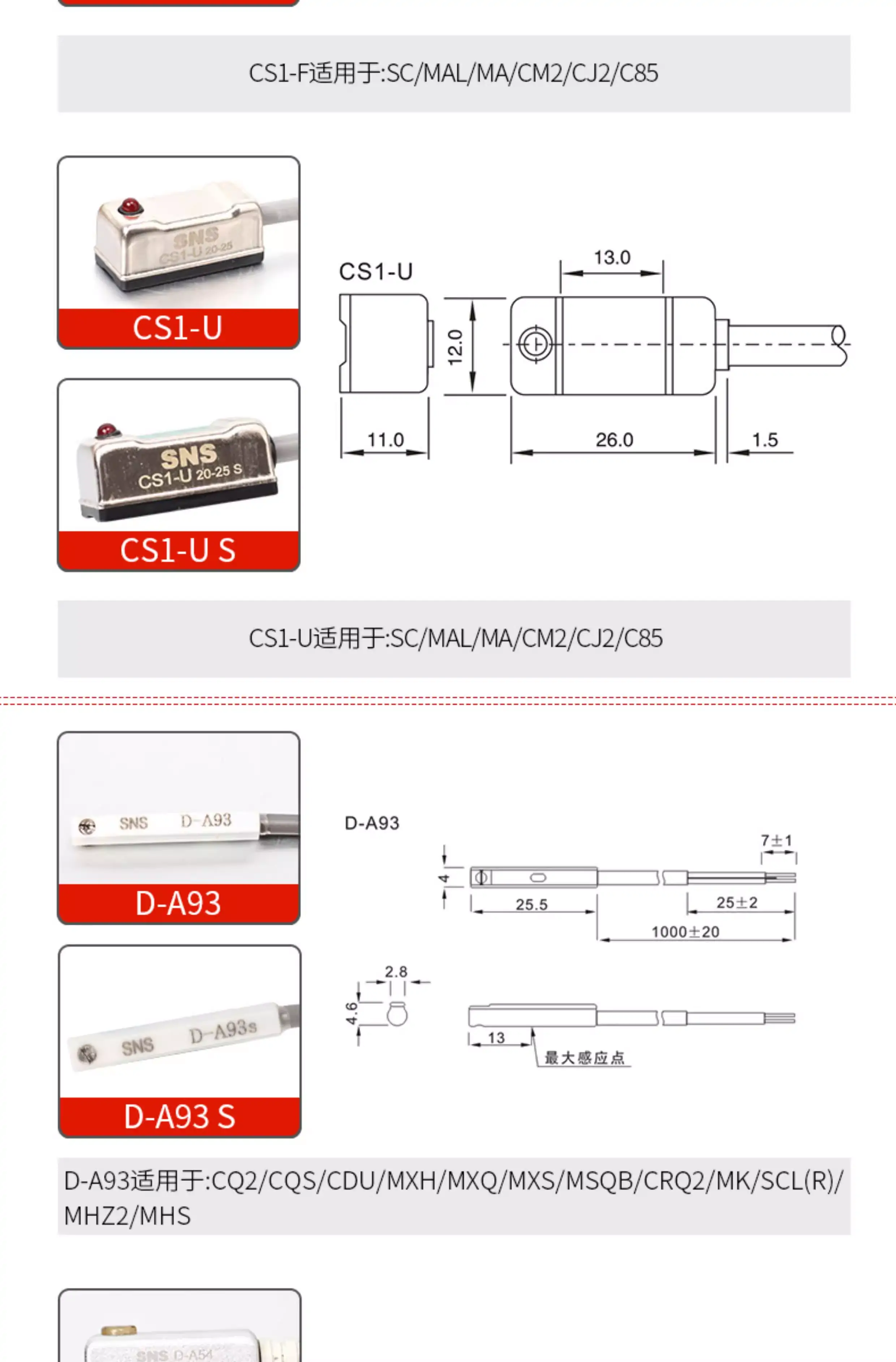 SNS磁性感應(yīng)器線開關(guān)CS1/D-F/U/S/J/G/M/Z.A73/54/93氣缸配件